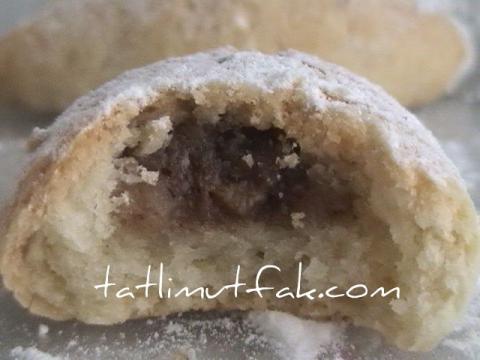- Kabartma tozunu ve unu bir kaba eleyin. Sonra margarini, yoğurdu ve pudra şekerinin yarısını ekleyerek iyice yoğurun. Hamur elinizi bırakana kadar yoğurun. Hamurdan ceviz büyüklüğünde parçalar kopararak elde top gibi yuvarlayın. Yuvarlanan hamuru elinizle yassı yuvarlak haline getirin. Hamurun ortasına hazırladığınız harçtan koyun. Hamurun iki tarafını uçları üstüste gelecek şekilde birleştirin. Bütün hamuru bu şekilde hazırlayın.