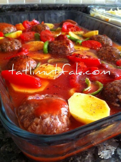 - Biberlerin içlerini çıkartarak onları da köfte ve patateslerin yanlarına veya altına dizin.