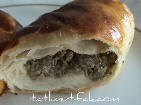 - İç malzeme için, 250 gr kıyma yazıyor asıl tarifte fakat ben daha az kullandım, 2 çorba kaşığı zeytinyağı ( ben sıvıyağ kullandım), 2 tane közlenmiş patlıcan, 1 soğan, tuz ve karabiber