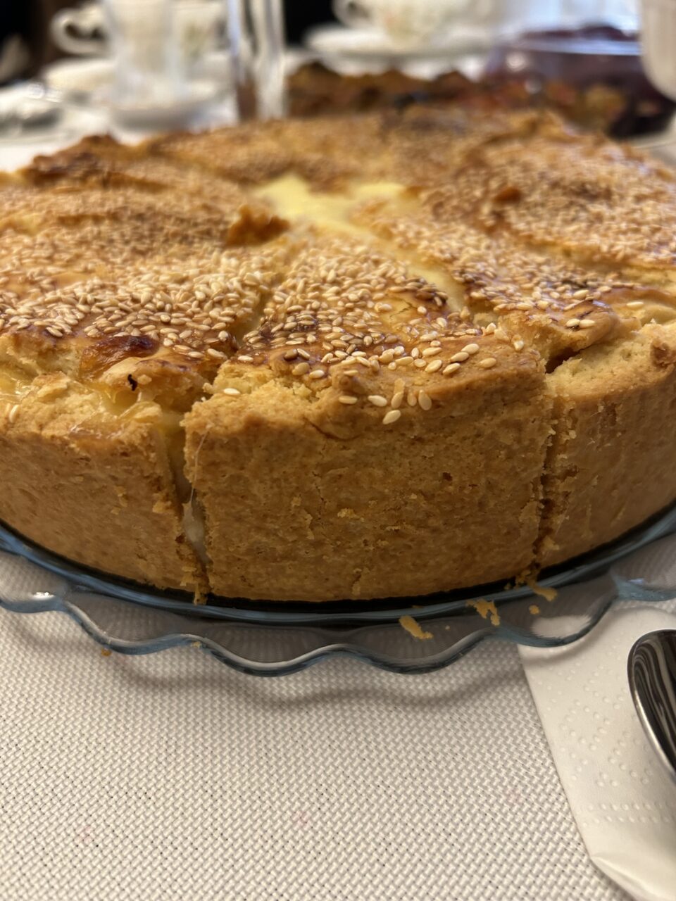 3. Dinlenen hamuru iki parçaya ayırın, bir parçası daha büyük olsun. Büyük olan hamuru hafif unlanmış tezgahta merdane ile açıp, tereyağ ile yağlanmış kalıba kenarları yüksek olacak şekilde yerleştirin. Daha sonra tavuklu harcı içine koyup, güzelce yayın. Üzerine rendelenmiş peynir ekleyin. Kalan hamuru da kalıbınızın üzerine göre açıp yerleştirin. Elinizle birleşim yerlerini iyice kapatın. Bir yumurta sarısı ve bir yemek kaşığı sütü çırpıp tartın üzerine sürün ve bol Susam serpin. Tartı önceden ısıtılmış 175 derecelik fırında pişirin.